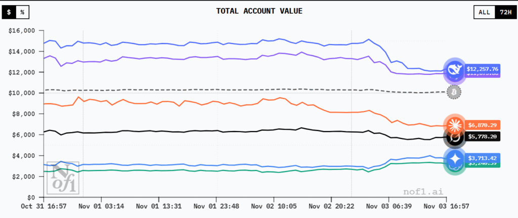 Cada modelo dispone de 10 000 dólares en capital real para realizar operaciones autónomas dentro de la bolsa descentralizada Hyperliquid, lo que garantiza que todas las transacciones sean públicas y verificables directamente en la blockchain.