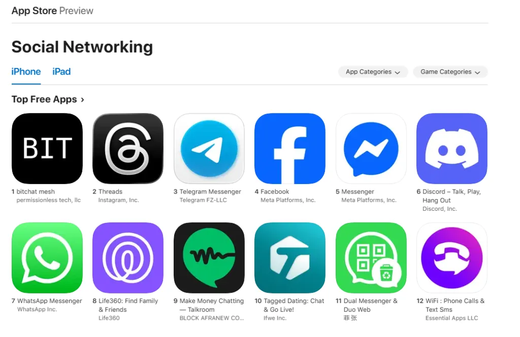 BitChat también ocupo el segundo lugar en el ranking general de aplicaciones gratuitas para las plataformas Apple y Android.