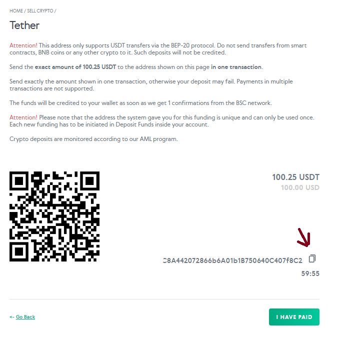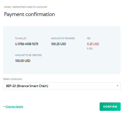 Damos click en «Deposit» y seleccionamos el protocolo «BEP-20»